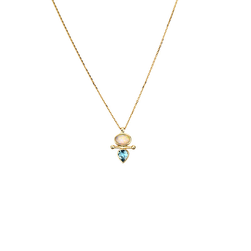 Une Opale cabochon, une Aigue-Marine en forme de goutte.